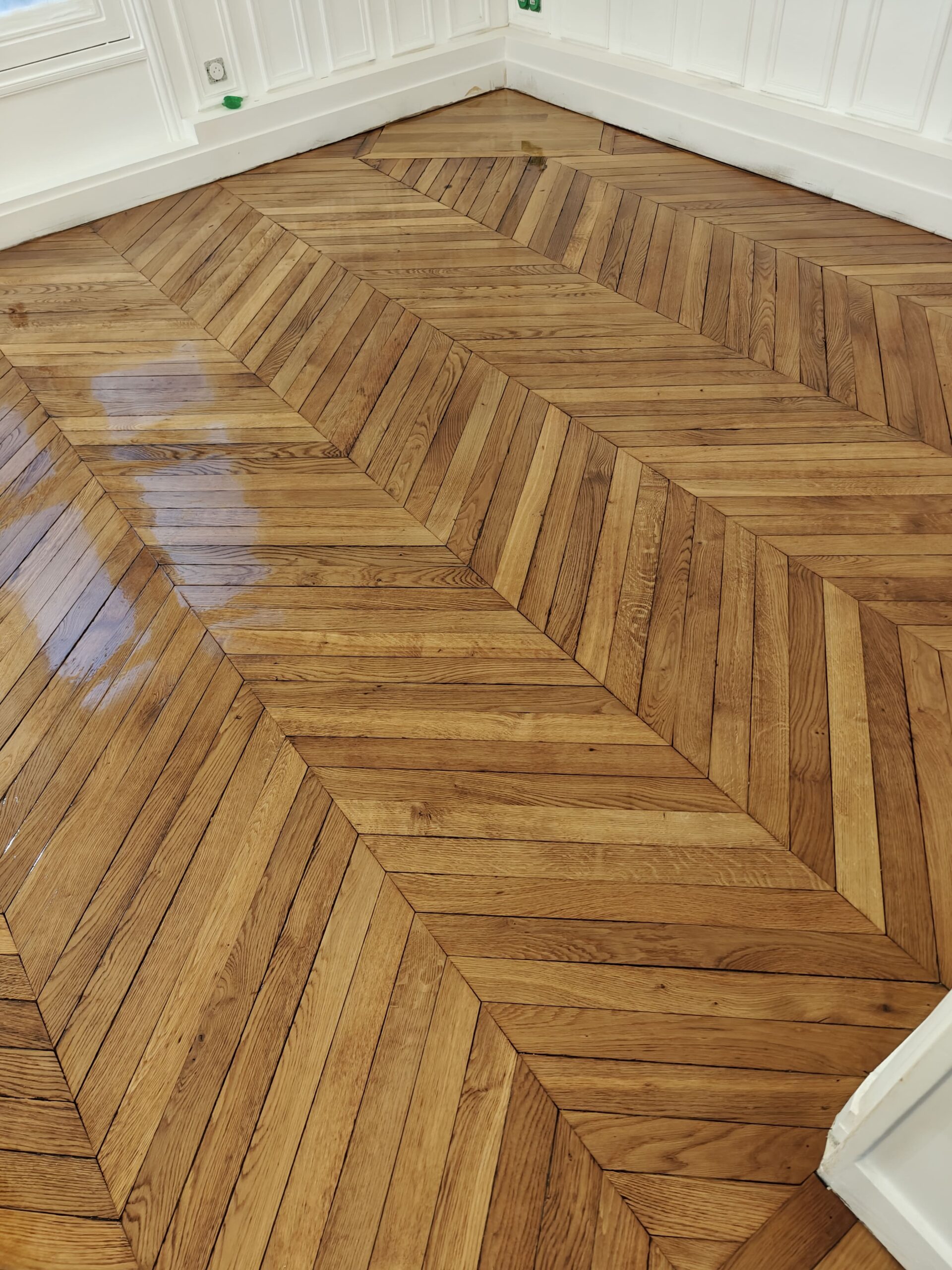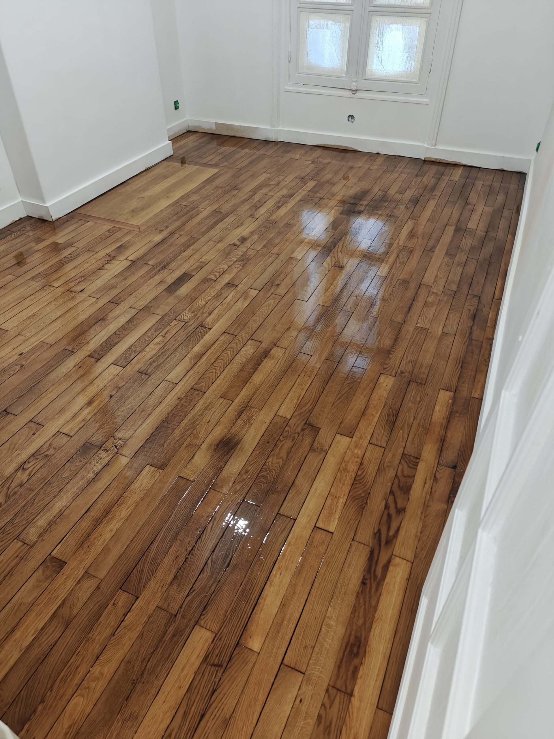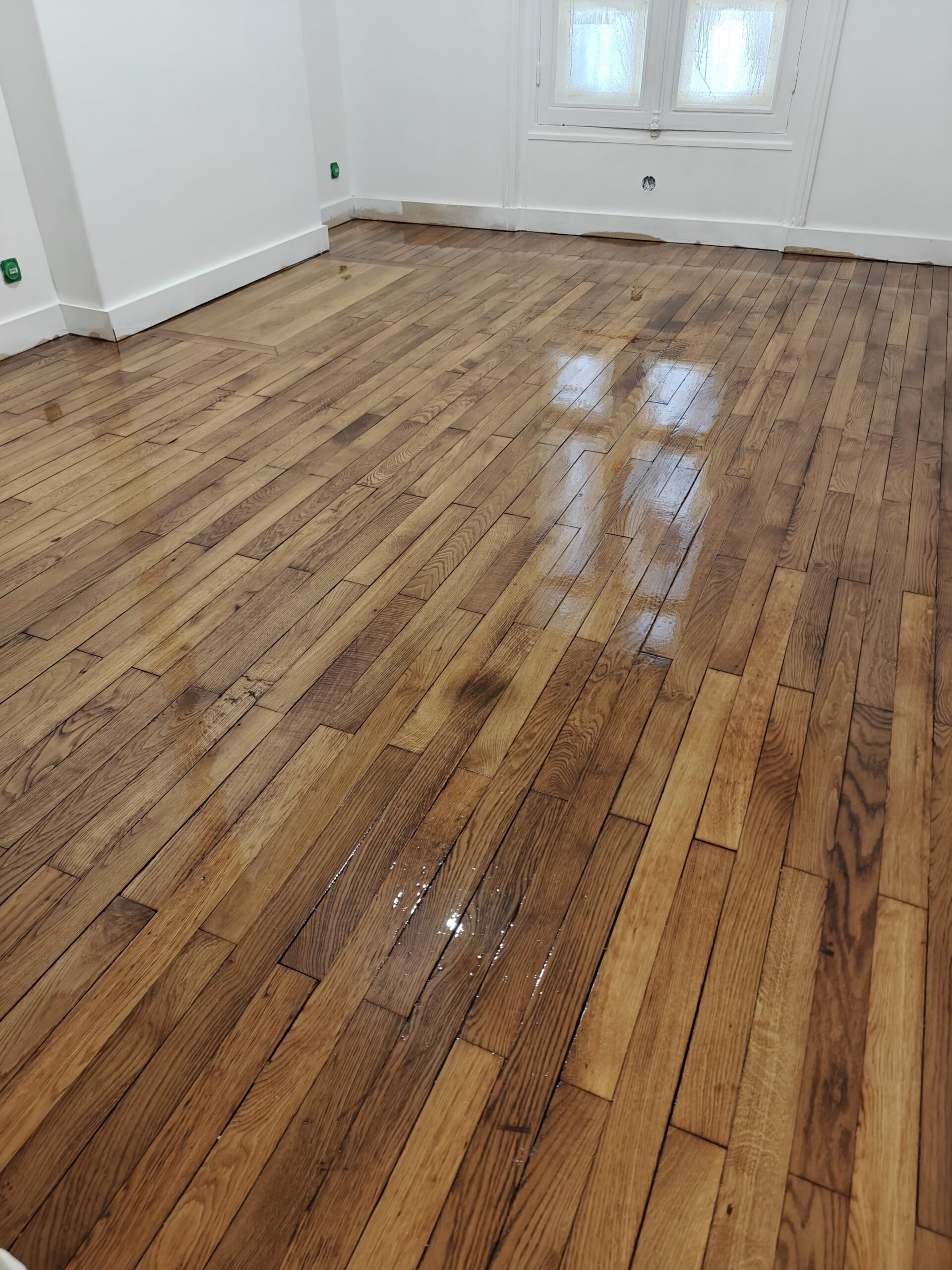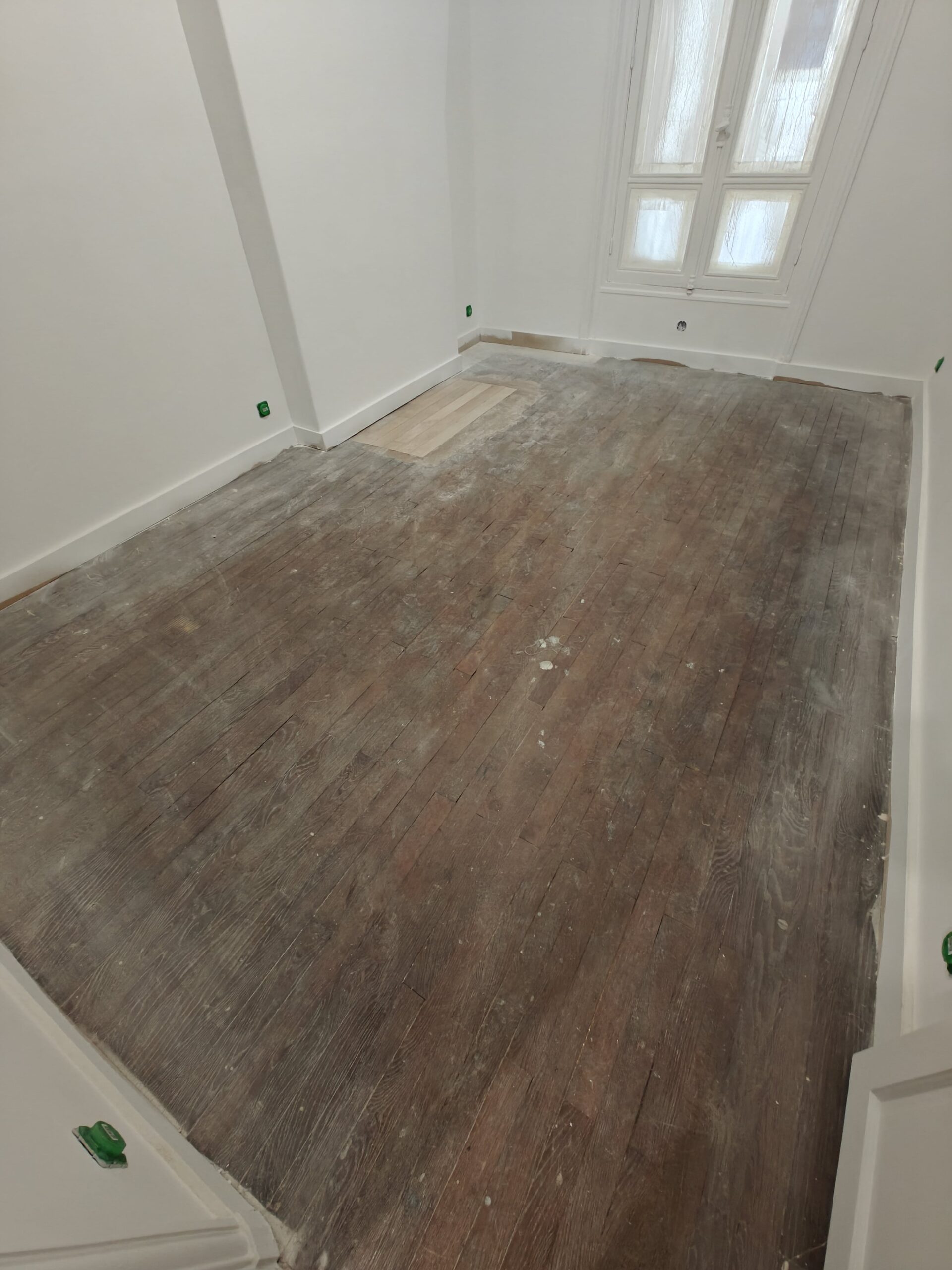 Nous avons réalisé la rénovation d’un parquet à Paris 18, en redonnant tout son éclat au bois grâce à un ponçage soigné et une finition adaptée. L’objectif : mettre en valeur le charme de l’appartement tout en assurant une surface durable et facile à entretenir. Ce type d’intervention permet non seulement d’embellir la pièce, mais aussi de prolonger la vie du parquet en préservant son aspect authentique.