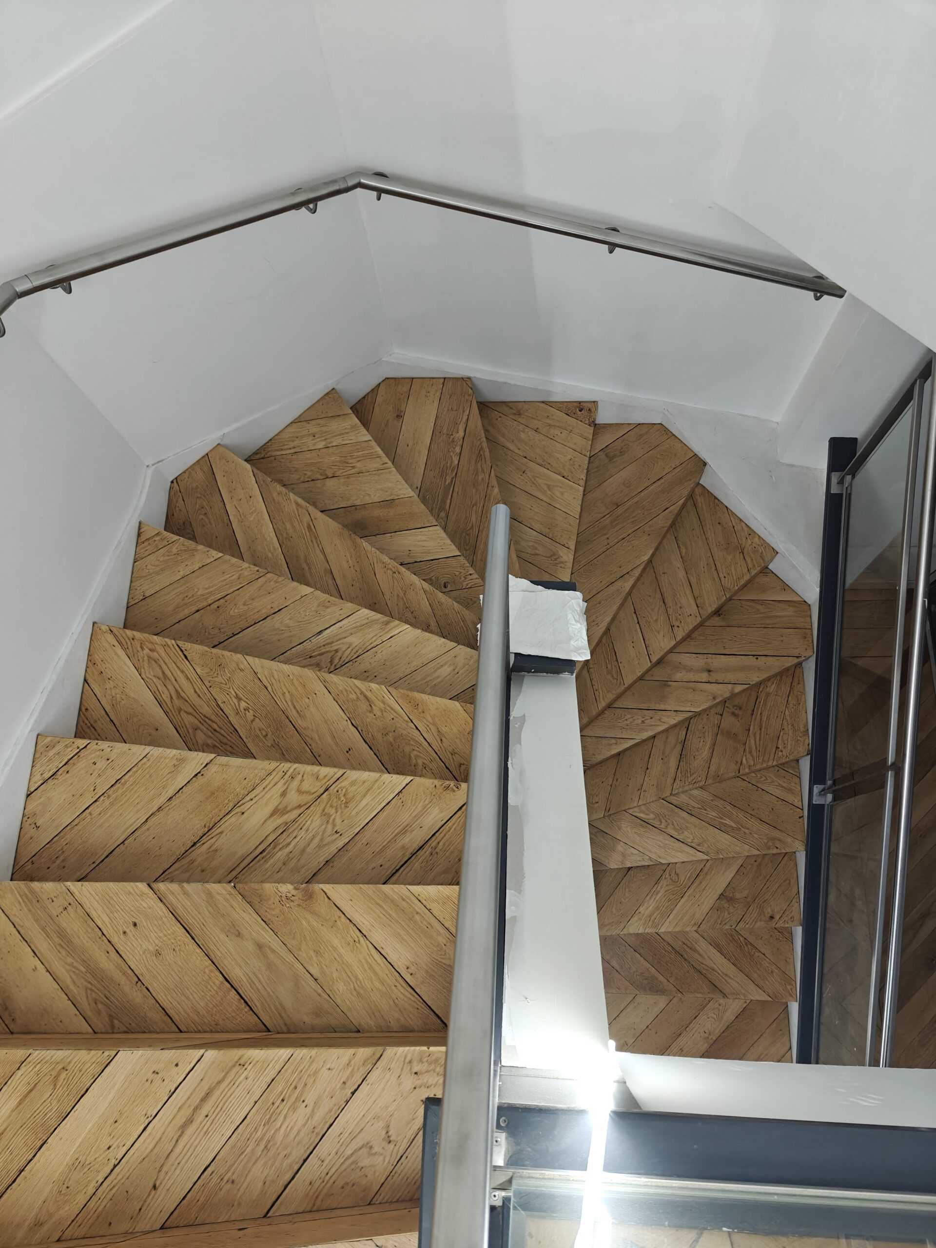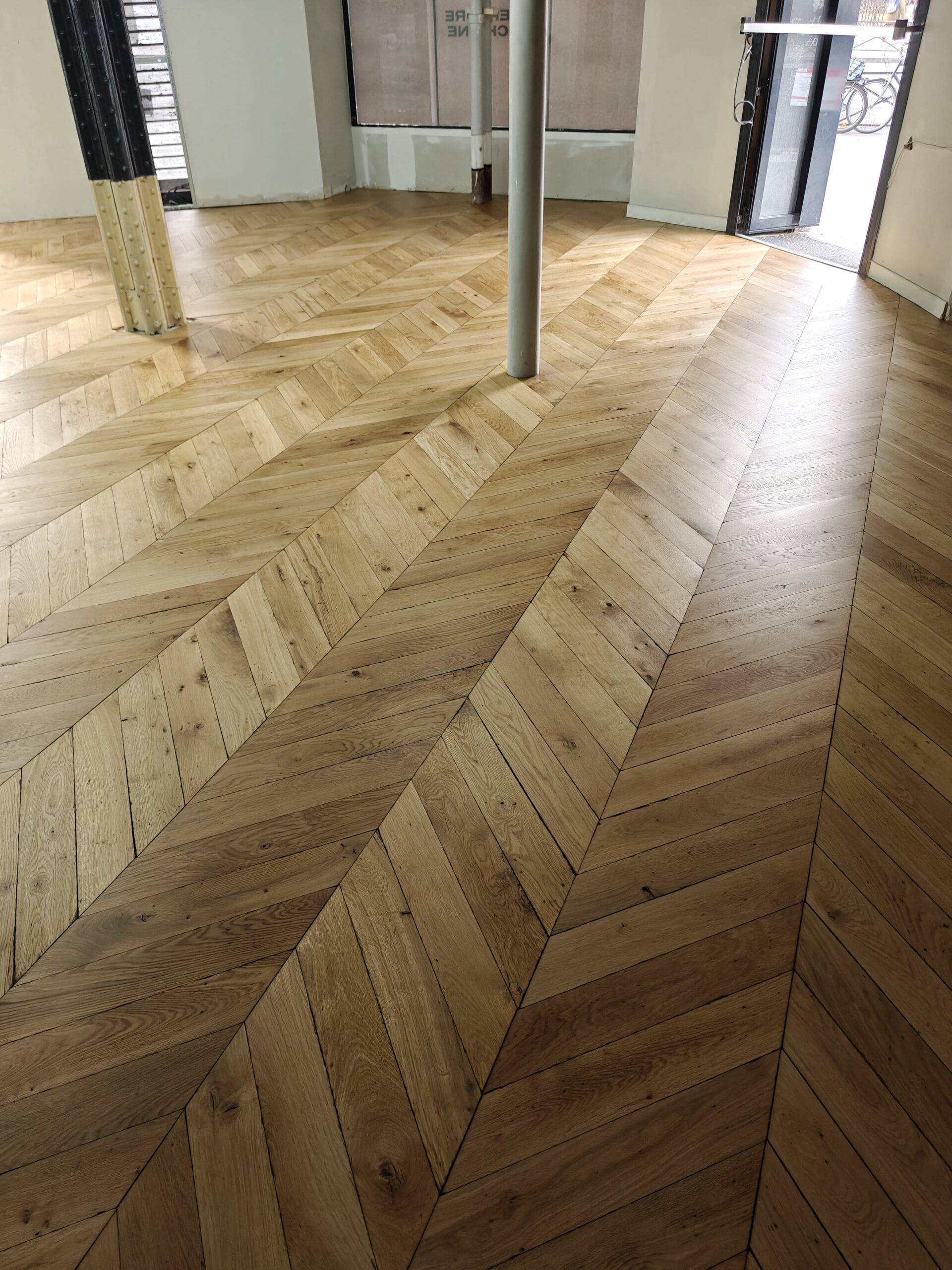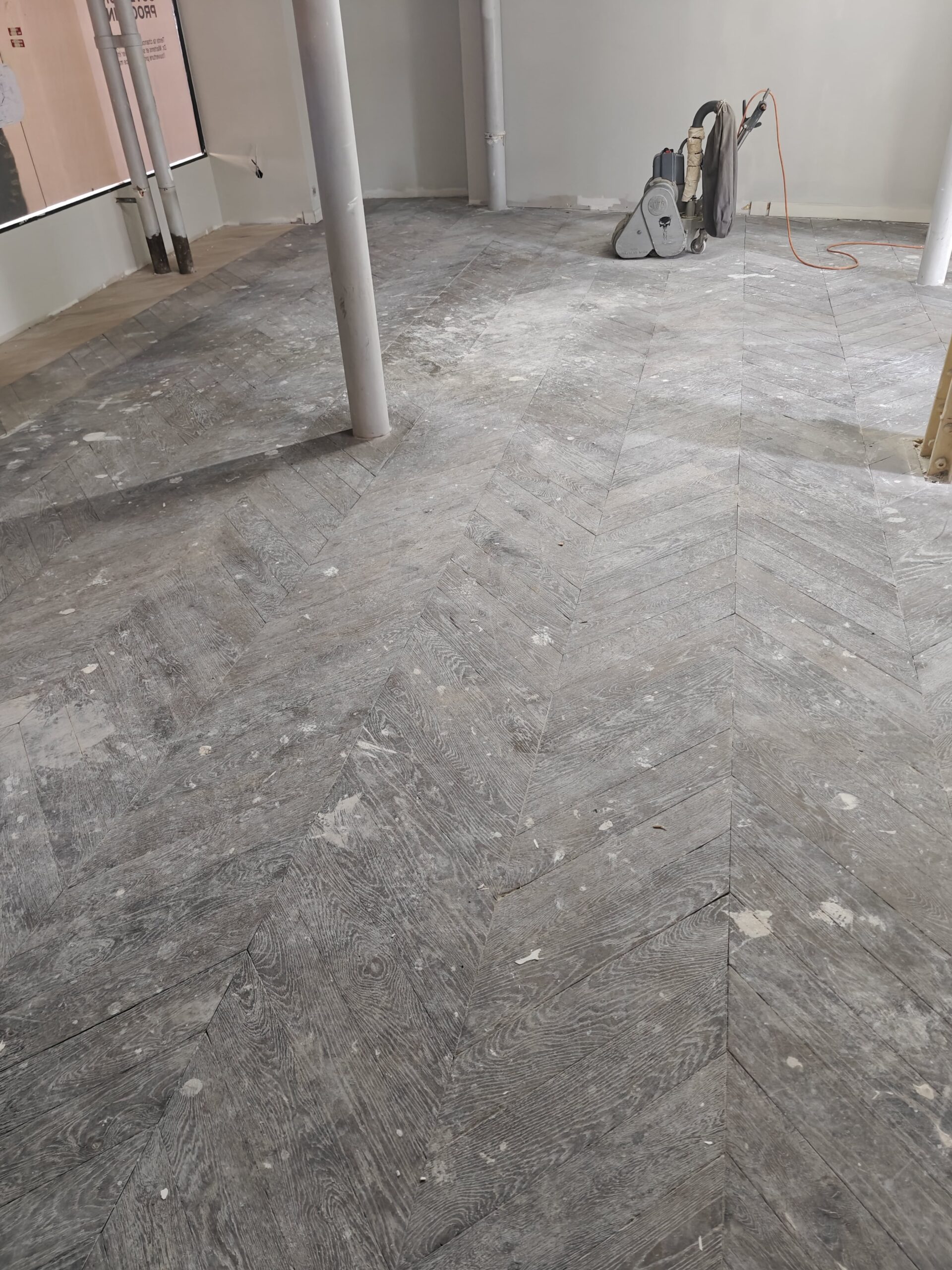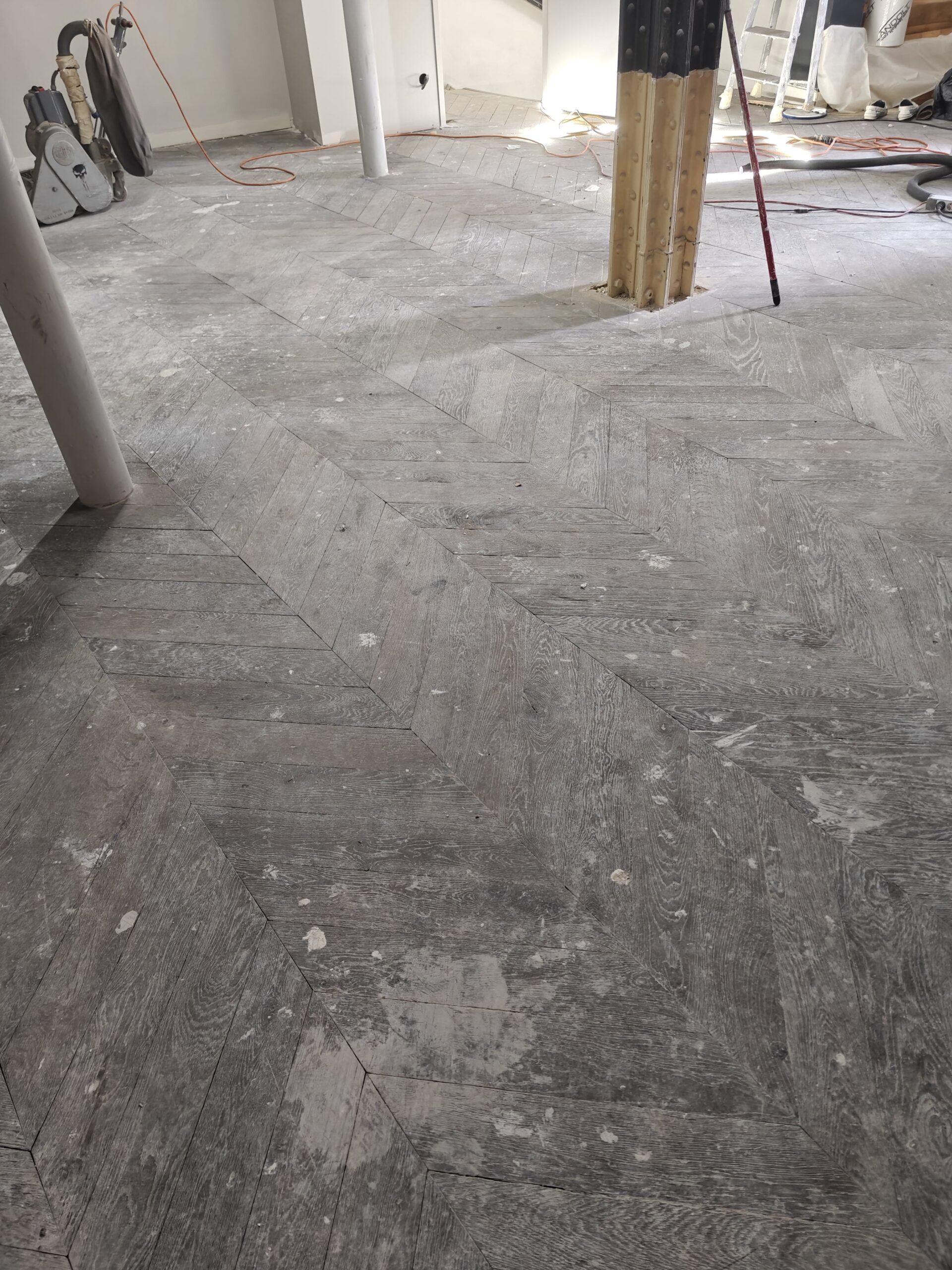 Nous avons réalisé la rénovation complète d’un parquet Point de Hongrie pour la boutique Dr. Martens, située dans le quartier animé de Saint-Michel à Paris. Après un ponçage minutieux et l’application d’une finition adaptée au passage intensif, le bois a retrouvé toute sa chaleur et son éclat d’origine. Ce travail a permis de sublimer l’espace de vente et de mettre en valeur l’authenticité du lieu, tout en garantissant une durabilité optimale face au flux quotidien de visiteurs.